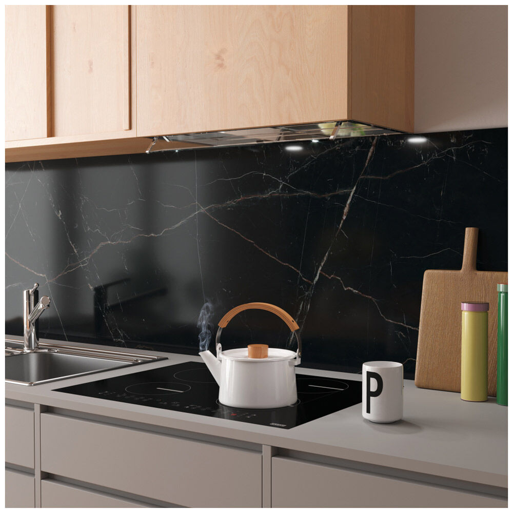 - Стеклокерамическая поверхность – премиальное чёрное стекло, устойчивое к царапинам, ударам и перепадам температур. Эффектный внешний вид и лёгкость в уходе.