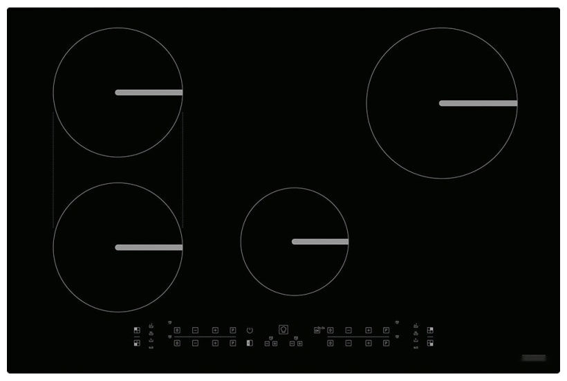 - 4 индукционные конфорки – оптимальная конфигурация для одновременного приготовления нескольких блюд. Достаточно мощности и пространства для любых кулинарных задач.