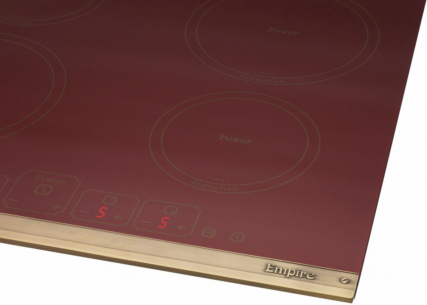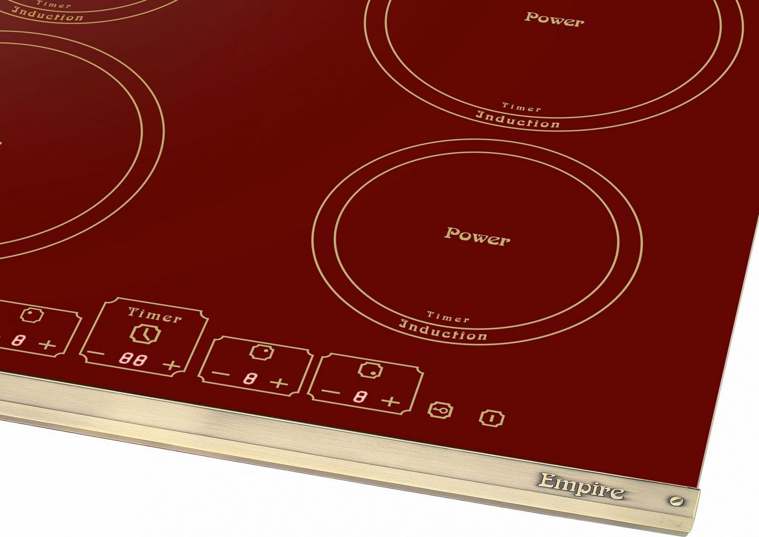 Варочная панель Kaiser KCT 6195 IRotEm сочетает неповторимый ретро-дизайн коллекции Empire и современные индукционные технологии. Модель выполнена в элегантном бордовом цвете с декоративными элементами из литой бронзы, создавая атмосферу роскоши на вашей кухне.