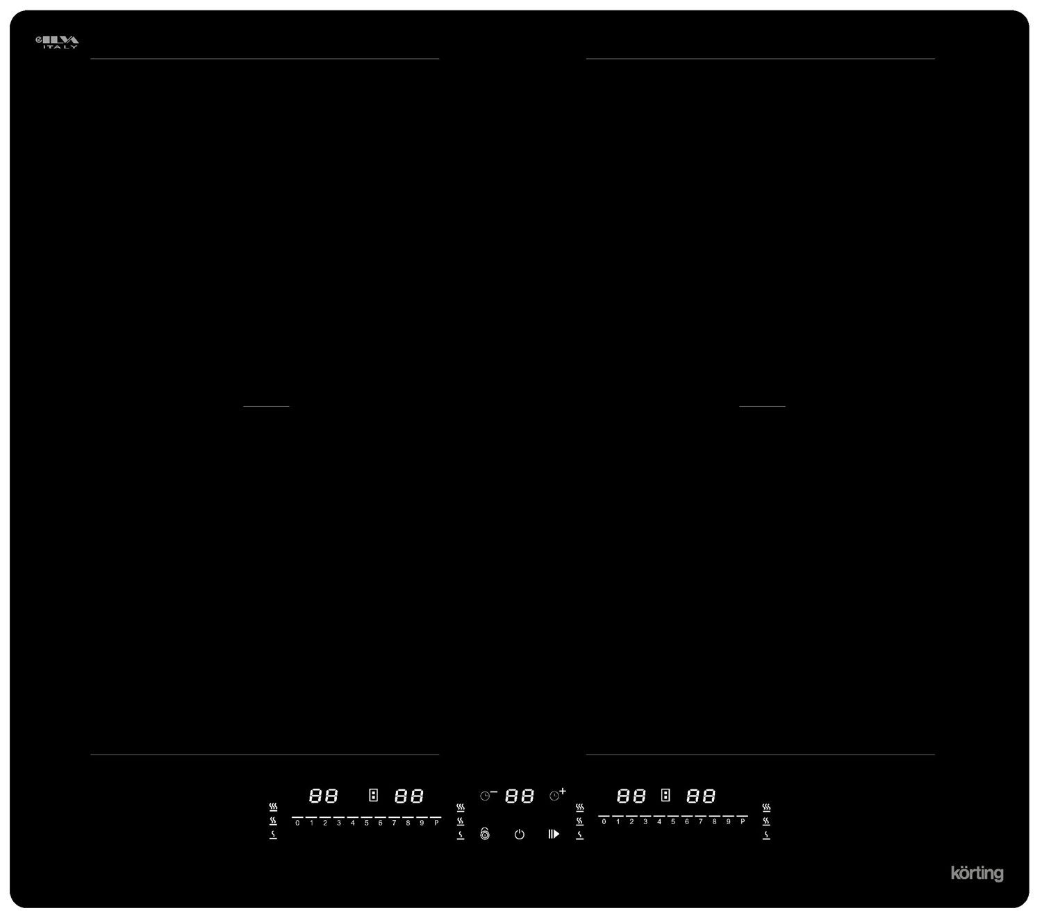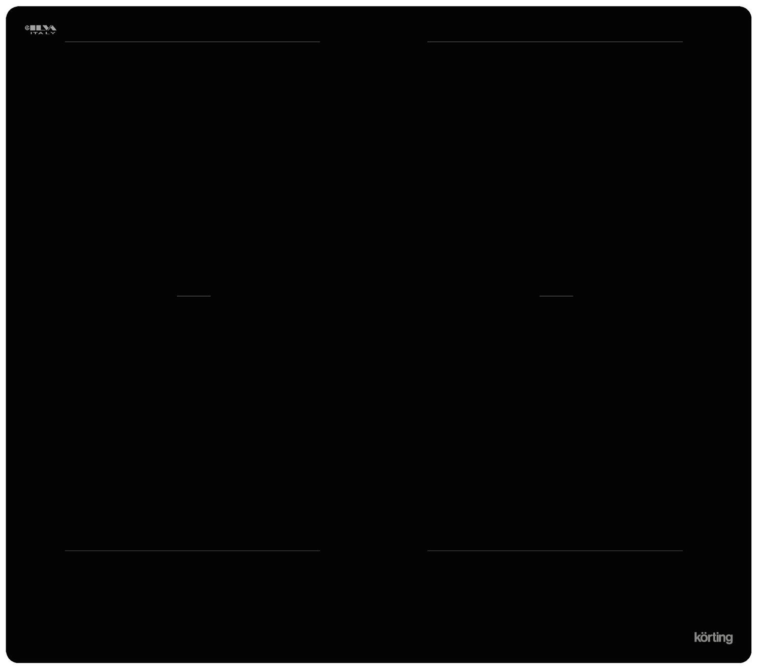 - Интеллектуальное управление вытяжкой — автоматическая синхронизация с вытяжкой Korting. Скорость вытяжки меняется сама в зависимости от мощности конфорок. Управление — прямо с панели варочной поверхности.