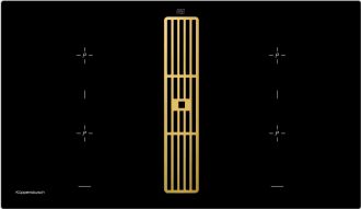 Индукционная варочная панель со встроенной вытяжкой Kuppersbusch KMI 9850.0 SR в эксклюзивной отделке Gold — это апогей стиля и функциональности. Модель объединяет четыре мощные индукционные зоны и встроенную вытяжку в единый прибор шириной 90 см, предлагая беспрецедентное решение для элитных интерьеров, где важна каждая деталь.