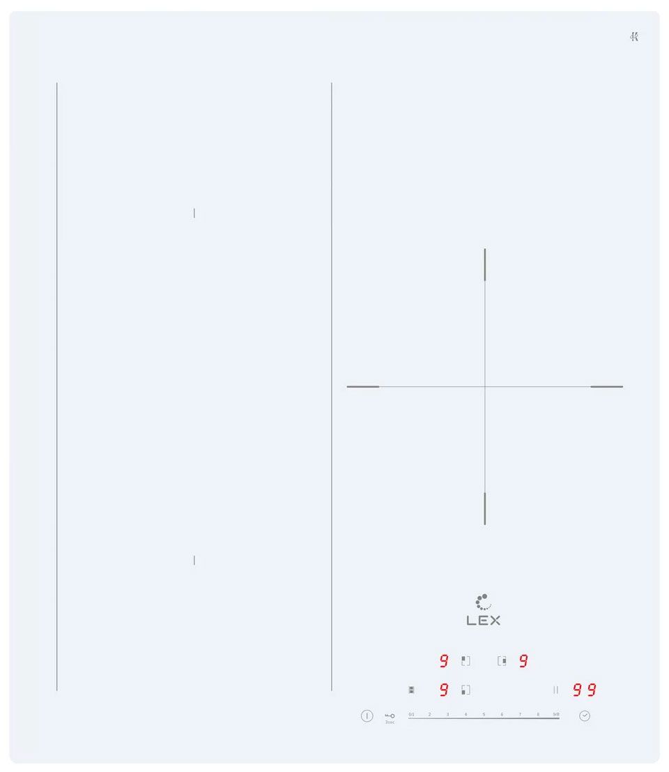 Электрическая варочная панель LEX EVI 431 A WH — компактный размер, интеллектуальные зоны нагрева и передовые функции для безопасности и эффективности.