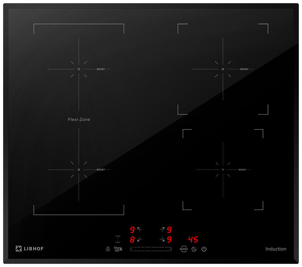 Индукционная варочная панель Libhof PH-72604I – премиальная мощность, четыре конфорки, Flexy-zone, 9 уровней нагрева и функция Boost