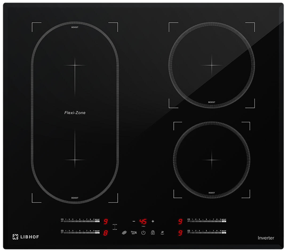 Индукционная варочная панель Libhof CH-72604I – премиальная мощность, четыре конфорки, Flexi-zone, 9 уровней нагрева и функция Boost