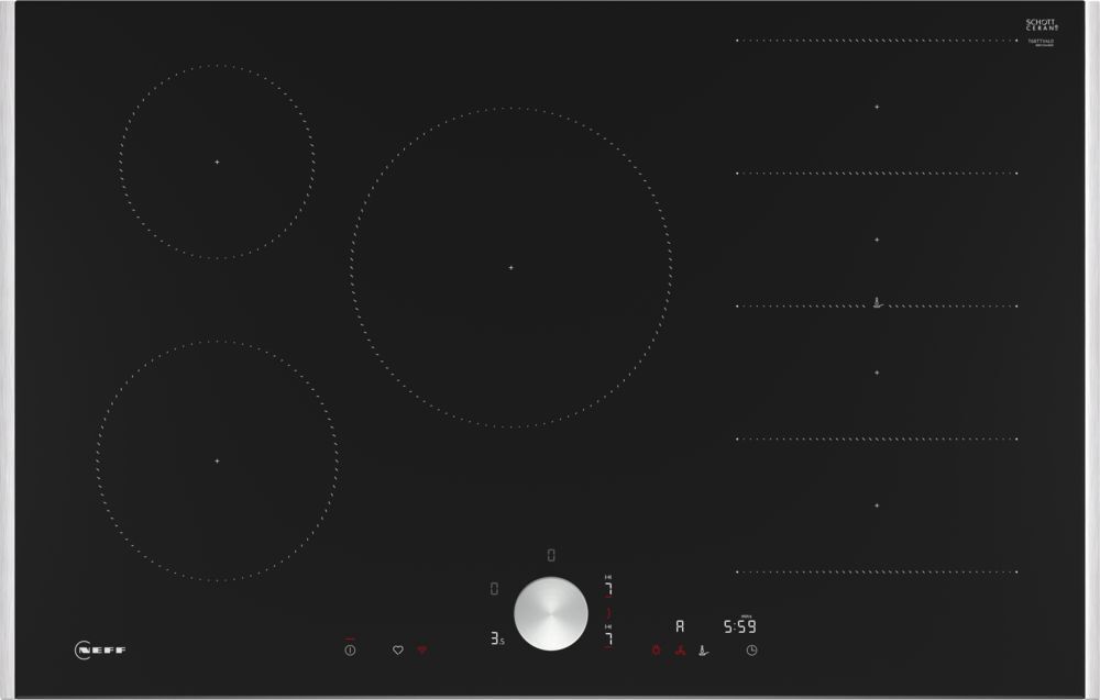 Индукционная варочная панель Neff T68TTV4L0 – 5-конфорочная панель с гибкими зонами FlexZone и съёмным контроллером TwistPad