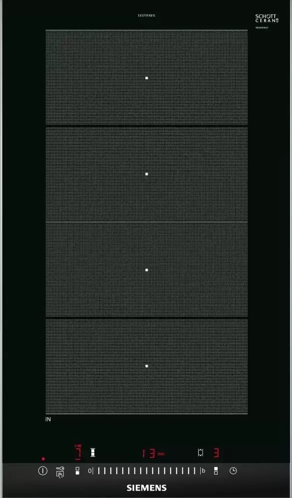 Индукционная варочная панель Siemens EX375FXB1E из престижной серии iQ700 – это идеальное решение для компактных кухонь и модульных конфигураций Домино. Узкий корпус шириной всего 30.2 см позволяет создавать индивидуальные комбинации с другими варочными панелями, а инновационная зона FlexZone трансформируется в две независимые конфорки или одну большую для посуды любых размеров. Сенсорное управление TouchControl, функция Power Move Plus и 17 ступеней регулировки мощности обеспечивают максимальный комфорт и контроль. Испанская сборка гарантирует премиальное качество и надёжность.