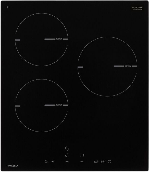 Индукционная варочная поверхность Krona MAGIER 45 BL – это стильное и компактное решение для небольших кухонь в стиле минимализм. Модель шириной 45 см оснащена 3 зонами непрерывного индукционного нагрева Infinite heating с функцией Booster, сенсорным управлением и полным набором систем безопасности, позволяя оптимизировать рабочее пространство без потери функциональности.