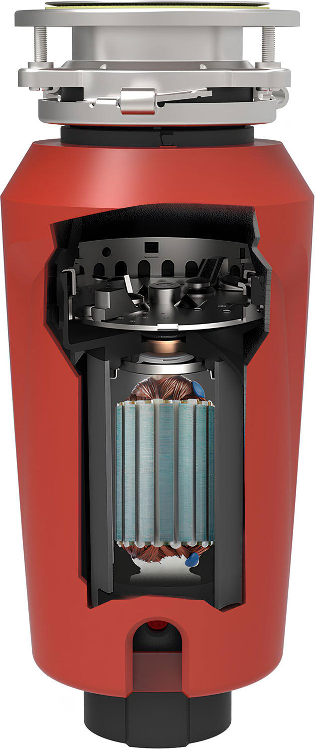 - Усиленный магнитный двигатель 1-1/4 HP (919,4 Вт) – высокоскоростной двигатель с постоянными магнитами обеспечивает стабильную работу под высокими нагрузками и быстрое измельчение пищевых отходов, включая крупные кости, волокнистые овощи и другие твёрдые продукты.