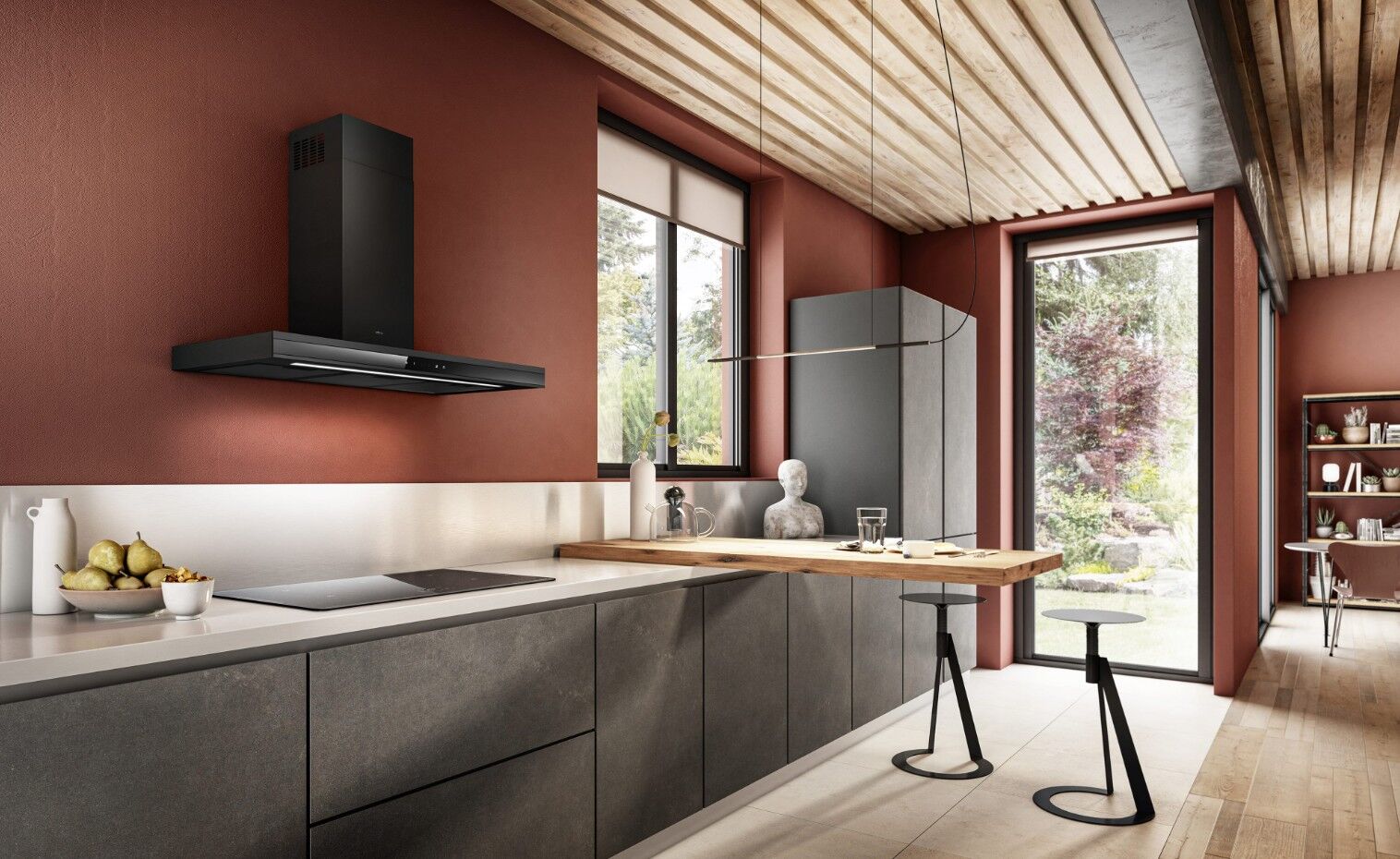 - Эстетика чёрного матового металла – строгий, благородный оттенок, который не теряет актуальности и подчёркивает современный стиль кухни