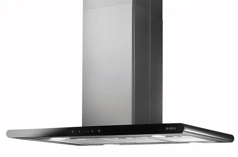 Каминная вытяжка Elica GALAXY BLIX/A/80 – высокоэффективная Т-образная модель из нержавеющей стали и черного стекла с производительностью 1000 м³/ч