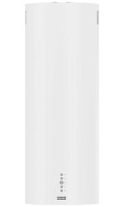 - Элегантный белый дизайн с элементами из нержавеющей стали – стильная цилиндрическая форма в белом цвете с отделкой из нержавеющей стали придаёт вытяжке современный и изысканный вид, идеально вписываясь в светлые интерьеры.