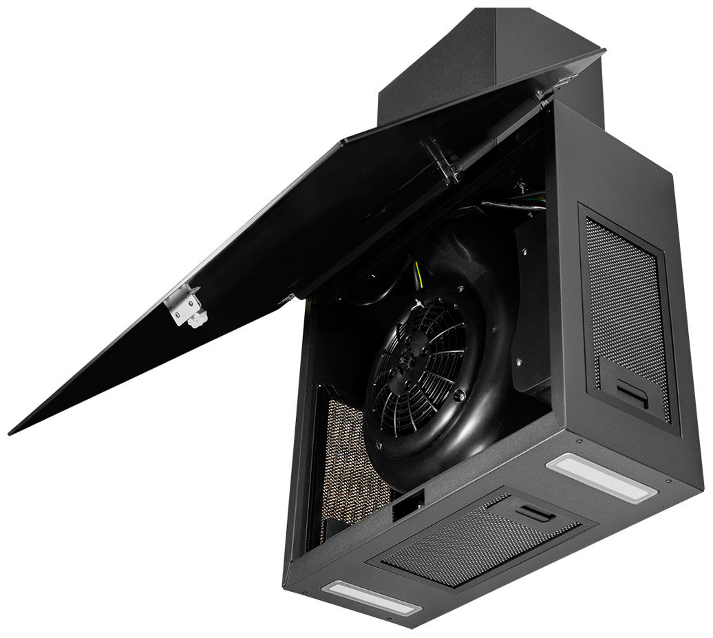 - Сверхтонкий корпус (18.6 см) – компактная глубина позволяет установить вытяжку практически в любом месте, не загромождая пространство, и придаёт ей изящный, современный вид.