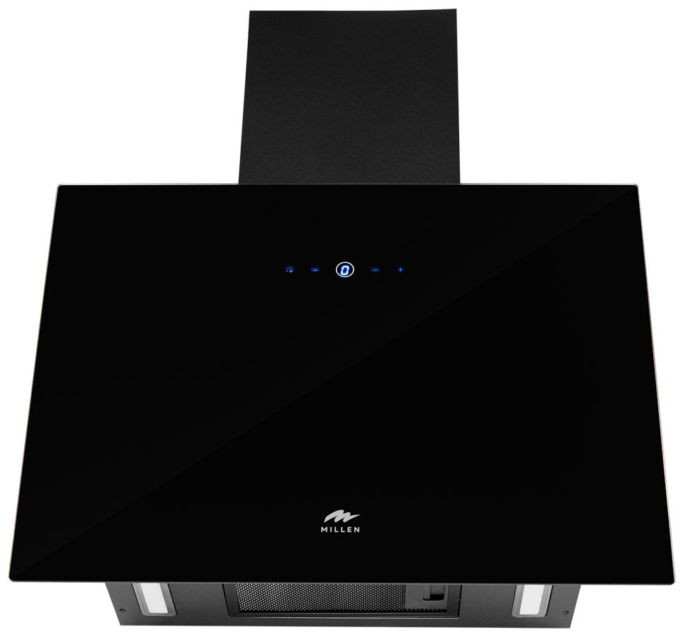 Наклонная вытяжка Millen MKHG 602 BL – чёрное стекло, мощность 1050 м³/ч и сенсорное управление Phantom