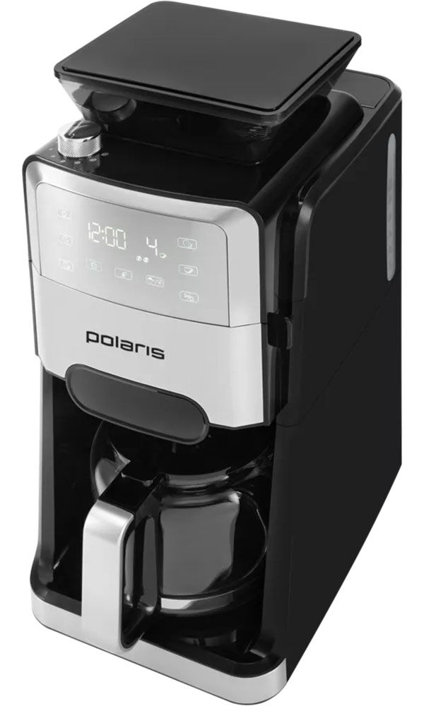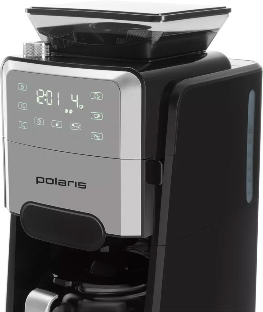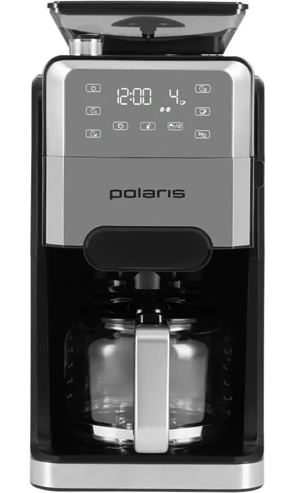 Капельная кофеварка Polaris PCM 1250 – встроенная кофемолка с конусными жерновами и 3 режимами интенсивности