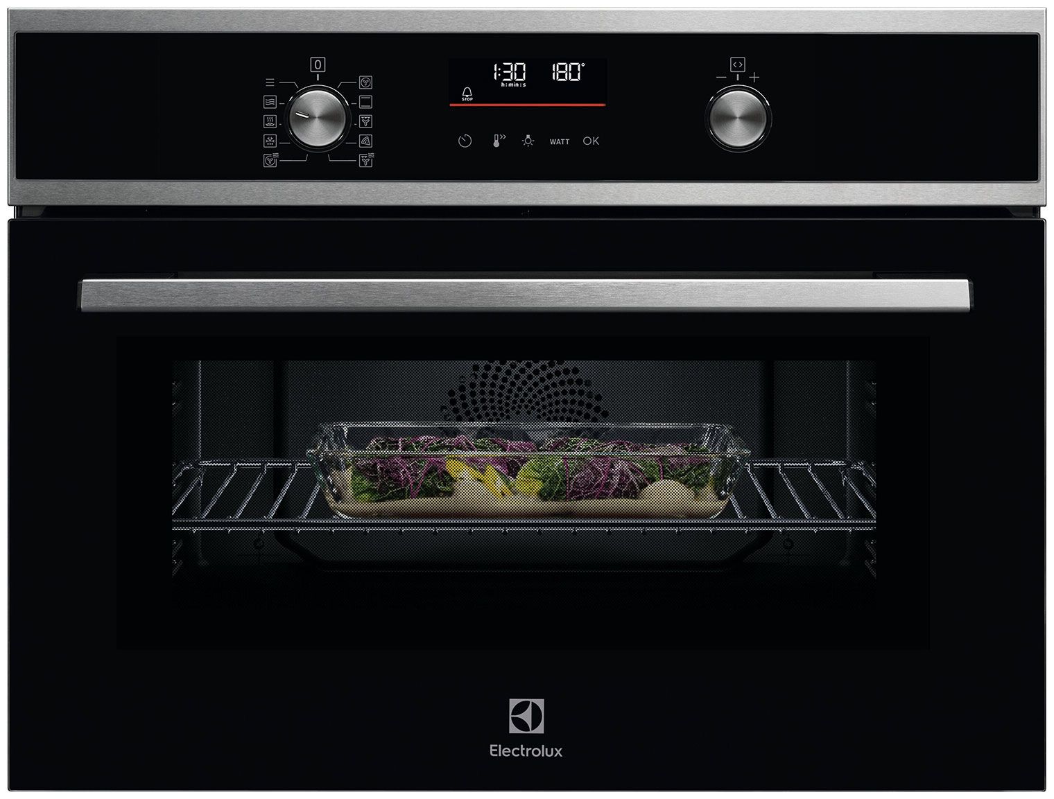 Компактный духовой шкаф с СВЧ Electrolux EVL6E49X — это многофункциональная модель, объединяющая в одном корпусе электрическую духовку и микроволновую печь для экономии пространства и времени.