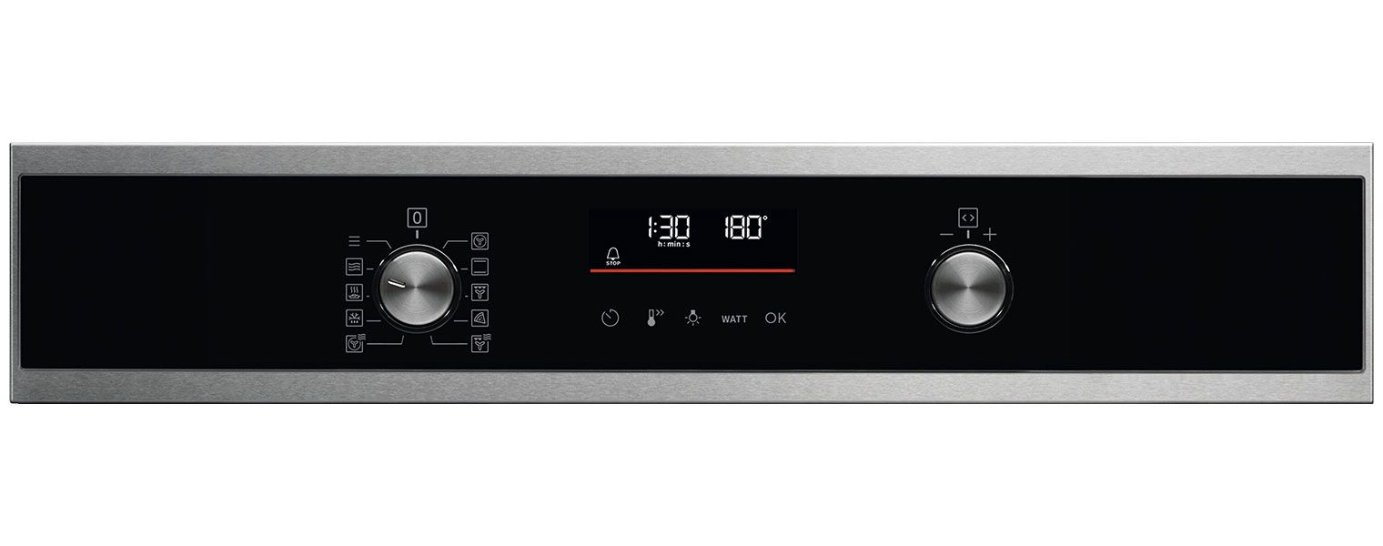 Модель представлена в цвете нержавеющая сталь и черный с электронным управлением и светодиодным экраном. Компактный дизайн и утапливаемые переключатели делают ее идеальным решением для современных кухонь.