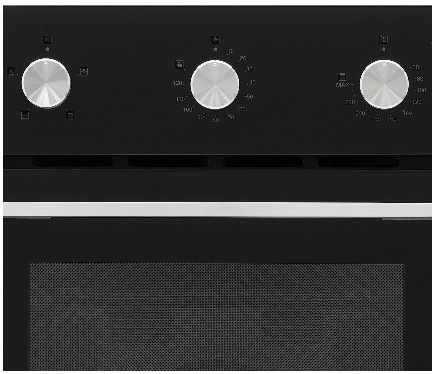 Встраиваемый электрический духовой шкаф KRONA LINDE 45 BL в черном цвете – это узкая модель шириной всего 45 см, созданная для экономии пространства. Управление осуществляется с помощью трех поворотных переключателей, что гарантирует простоту и долговечность использования.