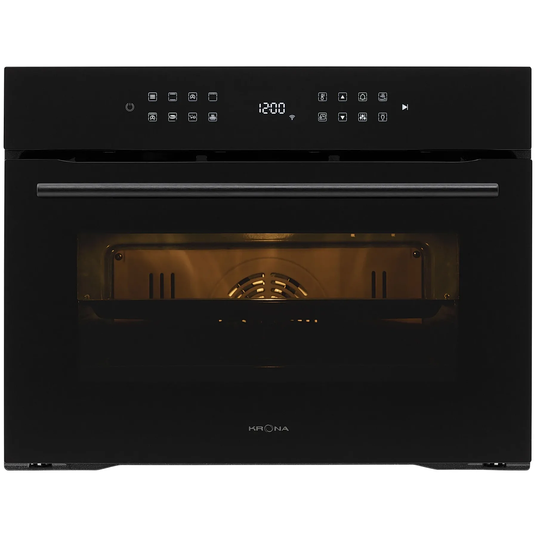 Духовой шкаф Krona ONYX 45H BL/BL – компактная высота 45 см с 4D-конвекцией, каталитической очисткой и управлением iHomePro