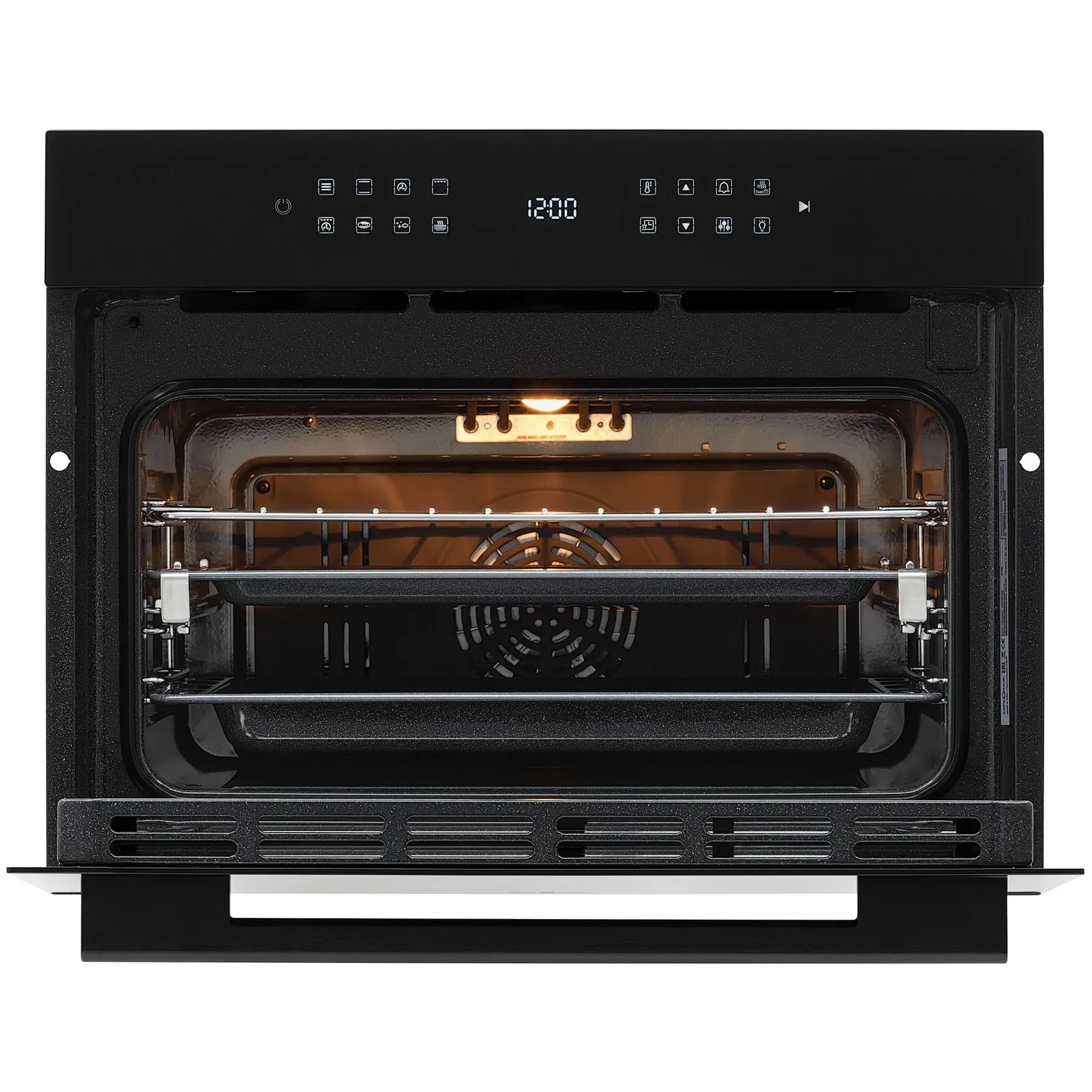 - Дизайн total black с чёрной ручкой – строгий чёрный корпус с чёрной фурнитурой придаёт духовке элегантный и технологичный вид, идеально вписываясь в современные интерьеры.