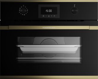 Компактный встраиваемый духовой шкаф с паром Kuppersbusch серии K.3 в премиальном золотом исполнении с черной дверцей объединяет эксклюзивную эстетику и передовые паровые технологии для здорового и профессионального приготовления. Эта модель с объемом 44 литра и внешним парогенератором предлагает 13 программ (8 духовых + 5 паровых) — максимум возможностей для малогабаритной кухни.