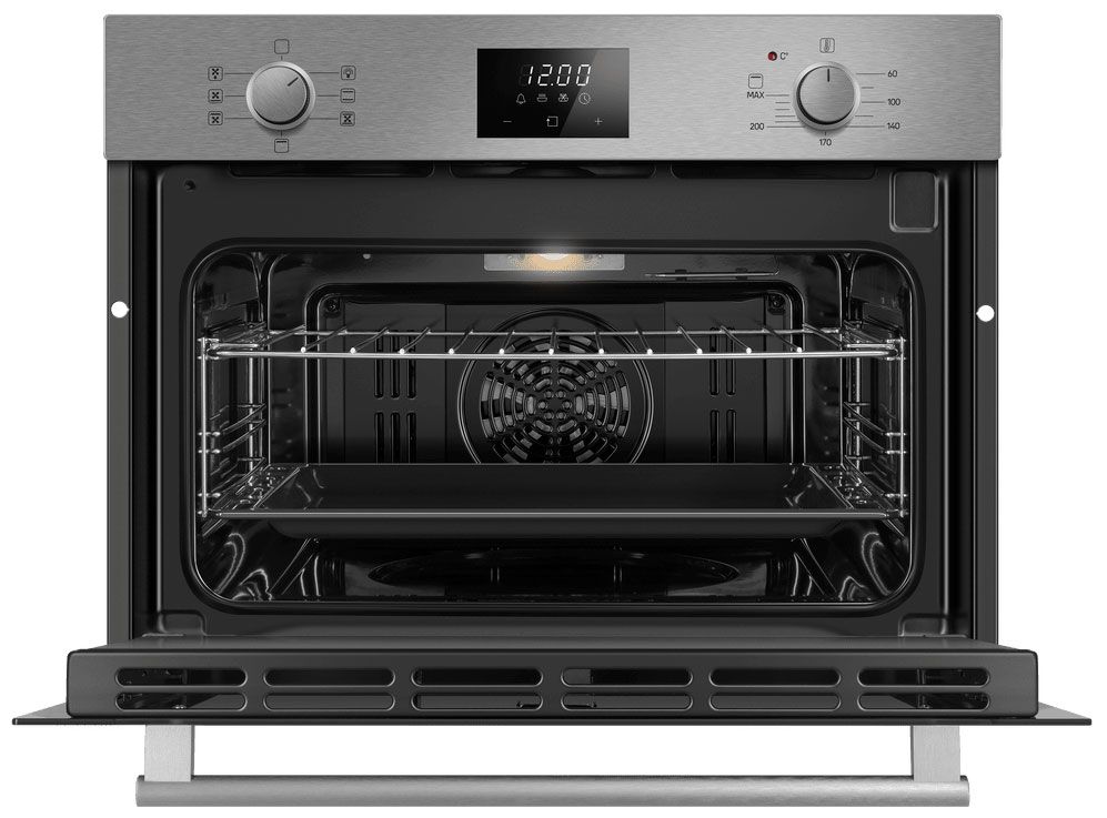 Электрический духовой шкаф Maunfeld AMCO537S в стильном черном корпусе сочетает компактные размеры (высота 45.5 см) и интеллектуальную систему управления. Модель оснащена LED-дисплеем и утопленными ручками Push Pull для максимального удобства использования.