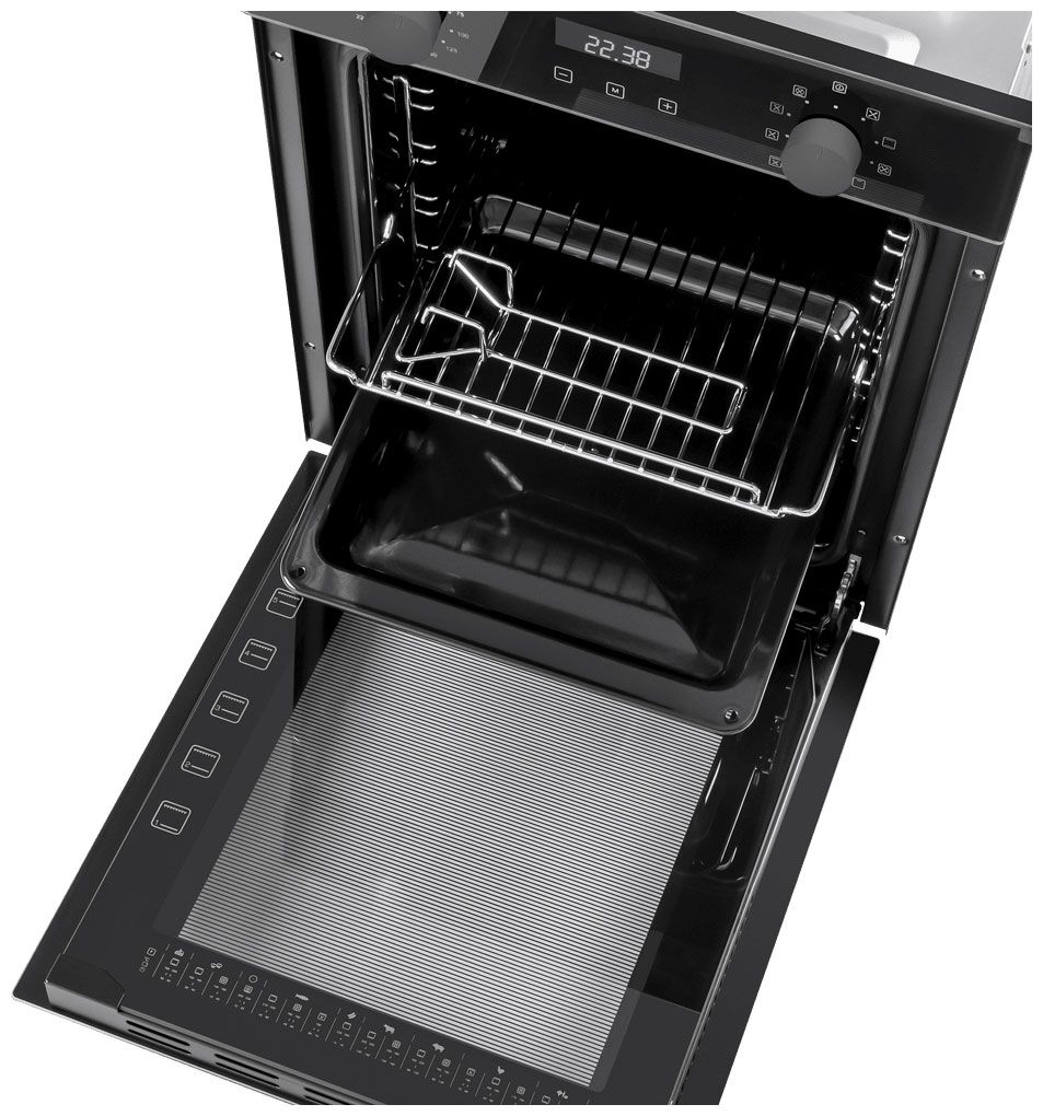 - Стильный дизайн – черное стекло с трамп-линиями и фурнитура из нержавеющей стали