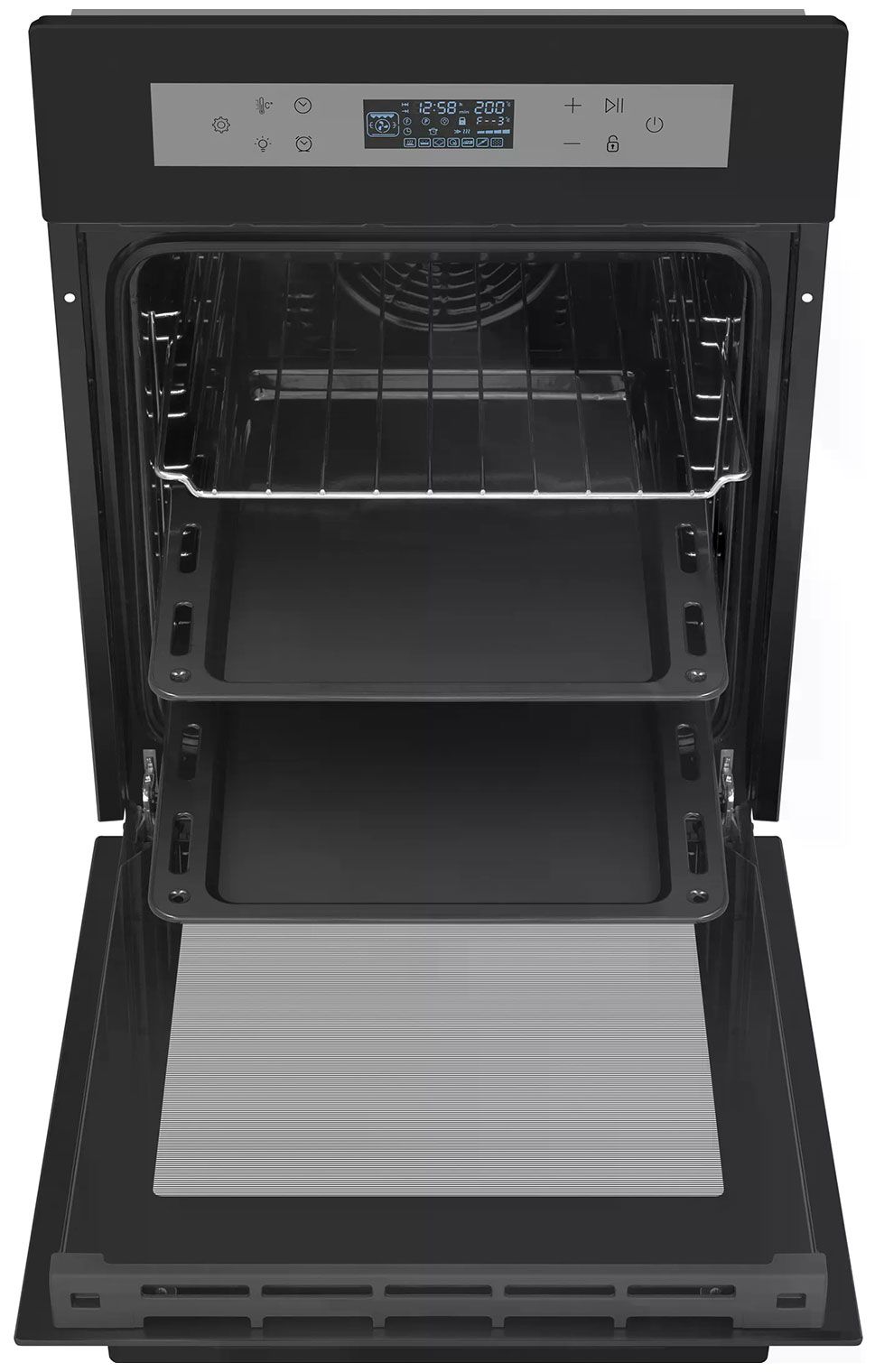 - Сенсорное управление – современная и удобная панель управления, обеспечивающая точный контроль над всеми функциями духовки легким прикосновением.