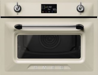 Компактный духовой шкаф Smeg SO4902M1P из коллекции Victoria сочетает уютную классическую эстетику с интеллектуальными технологиями комбинированного приготовления. Модель в теплом кремовом цвете объединяет в корпусе 45 см функции традиционной духовки, микроволновой печи (800 Вт) и гриля, предлагая 11 ручных режимов и 20 автоматических программ для безупречных результатов.