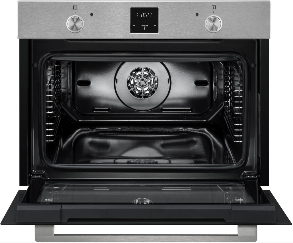 - Компактная высота 45 см и объём 50 л – при компактных размерах объём 50 л позволяет разместить весь необходимый объём пищи и работать на нескольких уровнях одновременно. Высота 45 см позволяет установить духовой шкаф в колонну для ещё большего удобства.