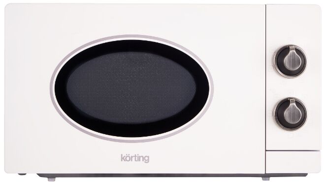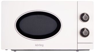 - Эксклюзивный ретро-дизайн – микроволновая печь выполнена в стиле ретро с цветовым решением античный белый и серебро. Она идеально сочетается с духовыми шкафами Korting той же серии, позволяя создать полноценный винтажный комплект для кухни.