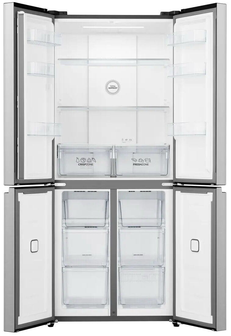 - Тип: многокамерный (French Door, морозильник снизу)