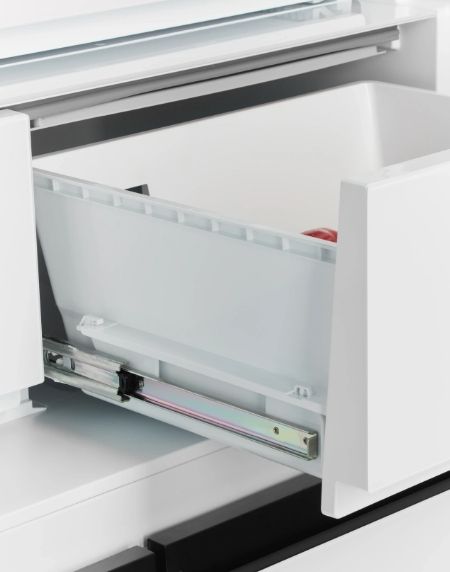 - Умная зона FLEX ZONE — выдвижной ящик с тремя режимами температуры (-4°C, 0°C, +4°C) для гибкого хранения мяса, рыбы, сыров или напитков.
