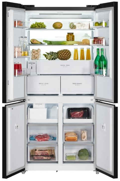 - Умная зона FLEX ZONE — выдвижной ящик с тремя режимами температуры (-4°C, 0°C, +4°C) для гибкого хранения мяса, рыбы, сыров, напитков или фруктов.