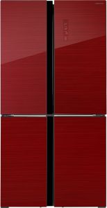 Четырехдверный инверторный холодильник HIBERG RFQ-500DX NFGR в эффектном цвете «красное стекло с полосками» сочетает броский дизайн и технологии для эффективного хранения. Модель формата Side-by-Side предлагает большой объем и удобное зонирование для просторных кухонь.