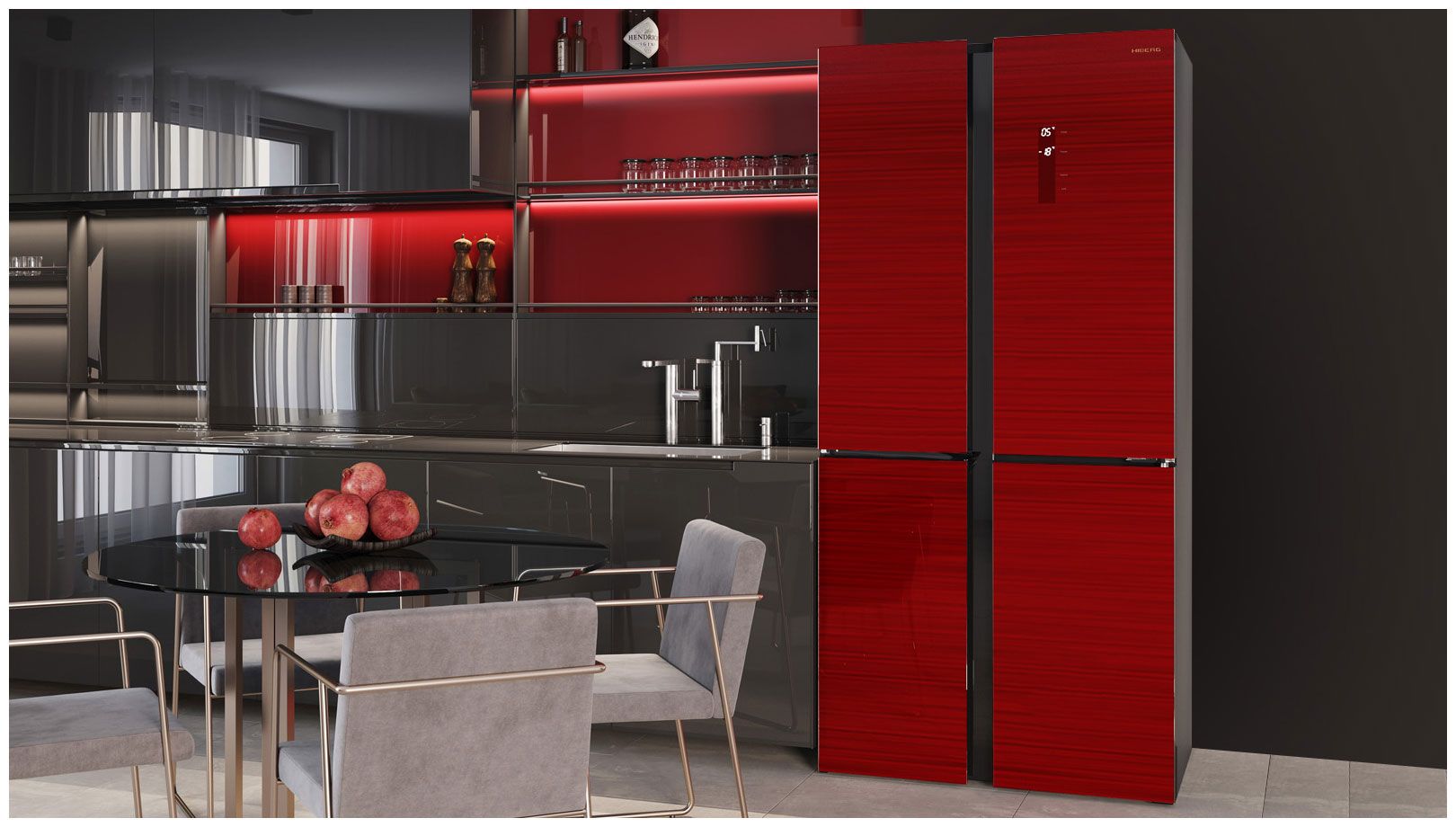 Многокамерный холодильник Hiberg RFQ-500DX NFGR Inverter – объем 545 литров, красное стекло и технологии для сохранения свежести