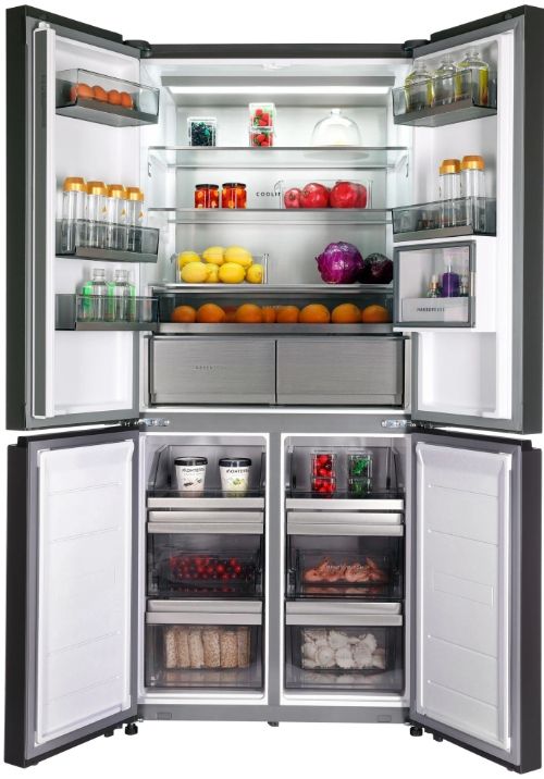 Четырехдверный инверторный холодильник HIBERG RFQ-610G GS в цвете «серое мраморное стекло» сочетает эффектный дизайн и инновационную организацию пространства. Модель с VIP-корпусом предназначена для встраивания в кухонный гарнитур и оснащена четырьмя специализированными зонами для продуктов.