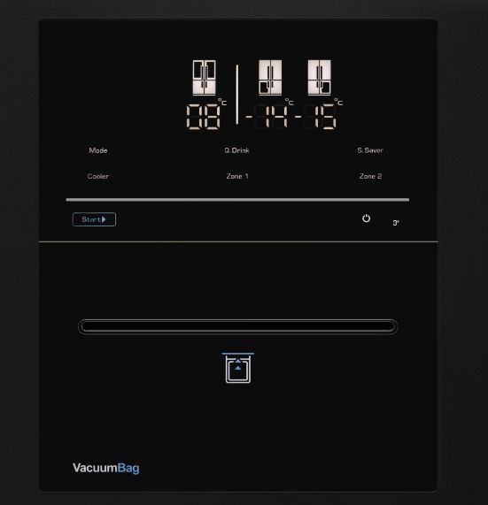 - Электронное сенсорное управление. Интуитивная панель для раздельной настройки температуры в каждой камере и управления вакууматором.