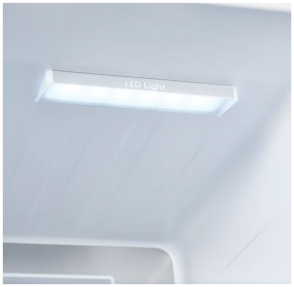 - Светодиодное освещение – яркий свет и экономия – экономичные LED-светильники обеспечивают приятное мягкое освещение и отличный обзор всех полок, не нагревая продукты и потребляя минимум энергии.