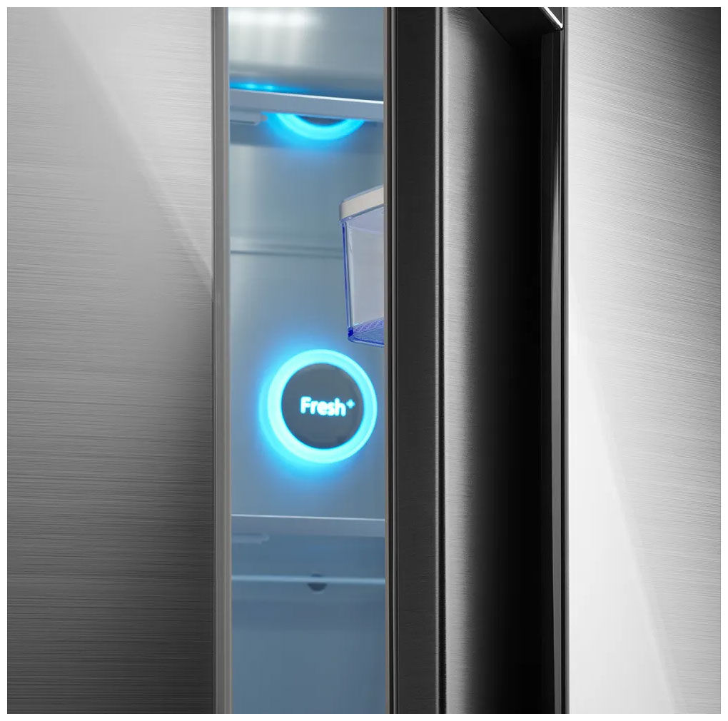 - Total No Frost – забудьте о размораживании навсегда – функция No Frost во всех камерах обеспечивает постоянную принудительную циркуляцию холодного воздуха, поддерживая одинаковую температуру на всех полках и предотвращая образование конденсата, инея и льда. Продукты остаются свежими, не примерзают друг к другу, а вам больше никогда не придется размораживать холодильник вручную.