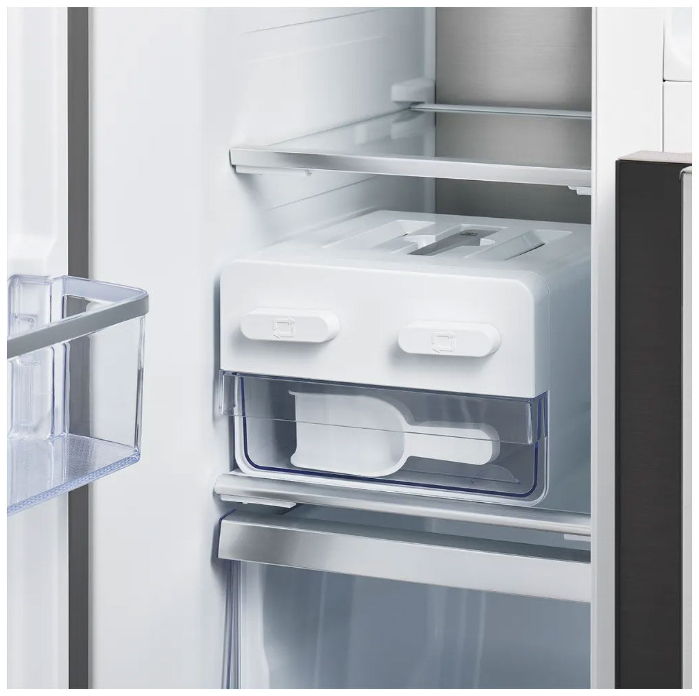 - Антибактериальный пластик с ионами серебра – чистота и безопасность – внутреннее покрытие из антибактериального пластика, созданного на основе ионов серебра, предотвращает размножение бактерий на поверхностях камер. Это гарантирует длительное хранение без изменения вкуса продуктов и защиту здоровья на протяжении всего срока службы холодильника.