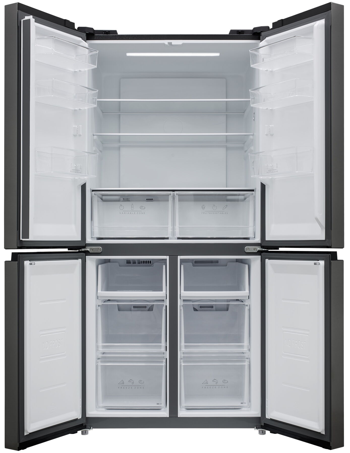 - Дизайн Cross Door с 4 дверцами – премиальный формат и максимальное удобство – 4 отдельные дверцы в формате Cross Door (French Door) обеспечивают удобный доступ к продуктам. Раздельное открывание секций экономит холод и электроэнергию.