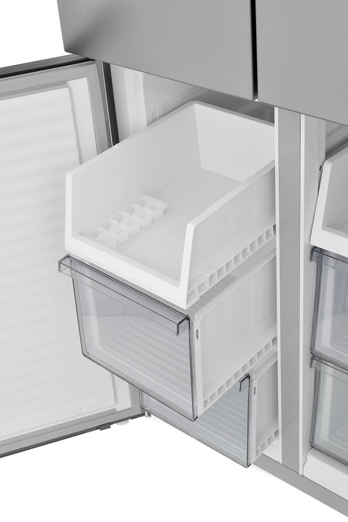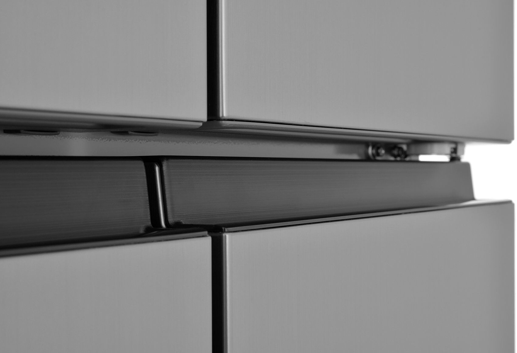 - Cross Door с 4 дверцами – премиальный дизайн и максимальное удобство – 4 отдельные дверцы и роскошный фасад из брашированной стали. Холодильник, который впечатляет с первого взгляда