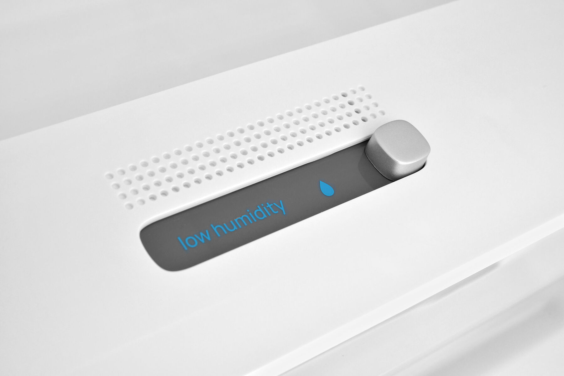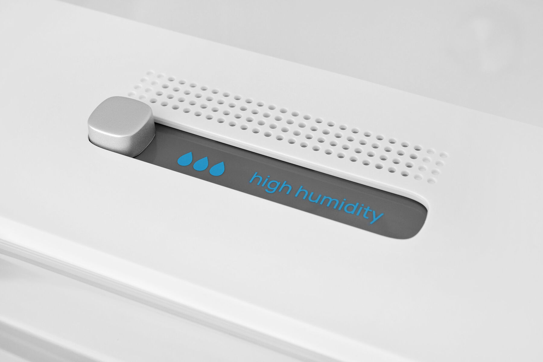 - Большой выдвижной ящик с регулятором влажности Humidity Control – идеальные условия для овощей и фруктов – специальный ящик с возможностью настройки влажности. Овощи и фрукты дольше остаются свежими, сочными и полезными.