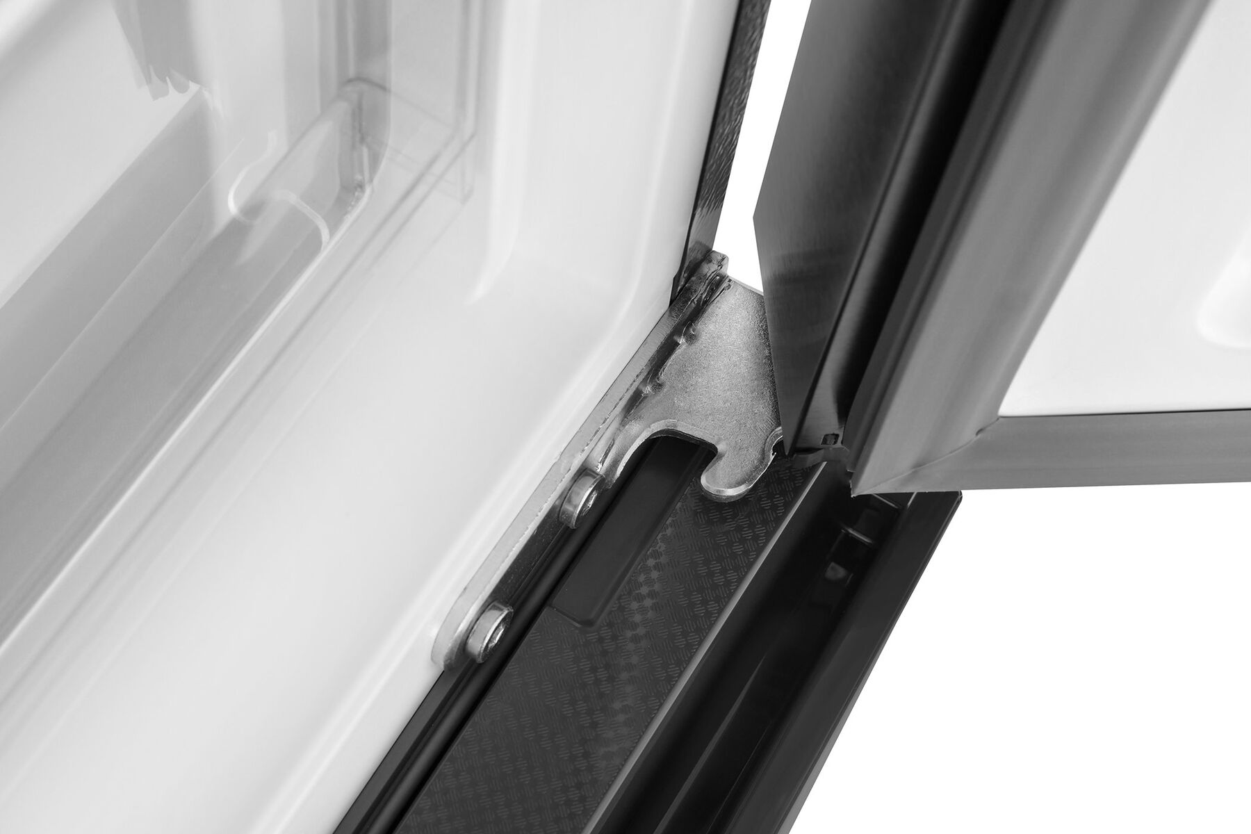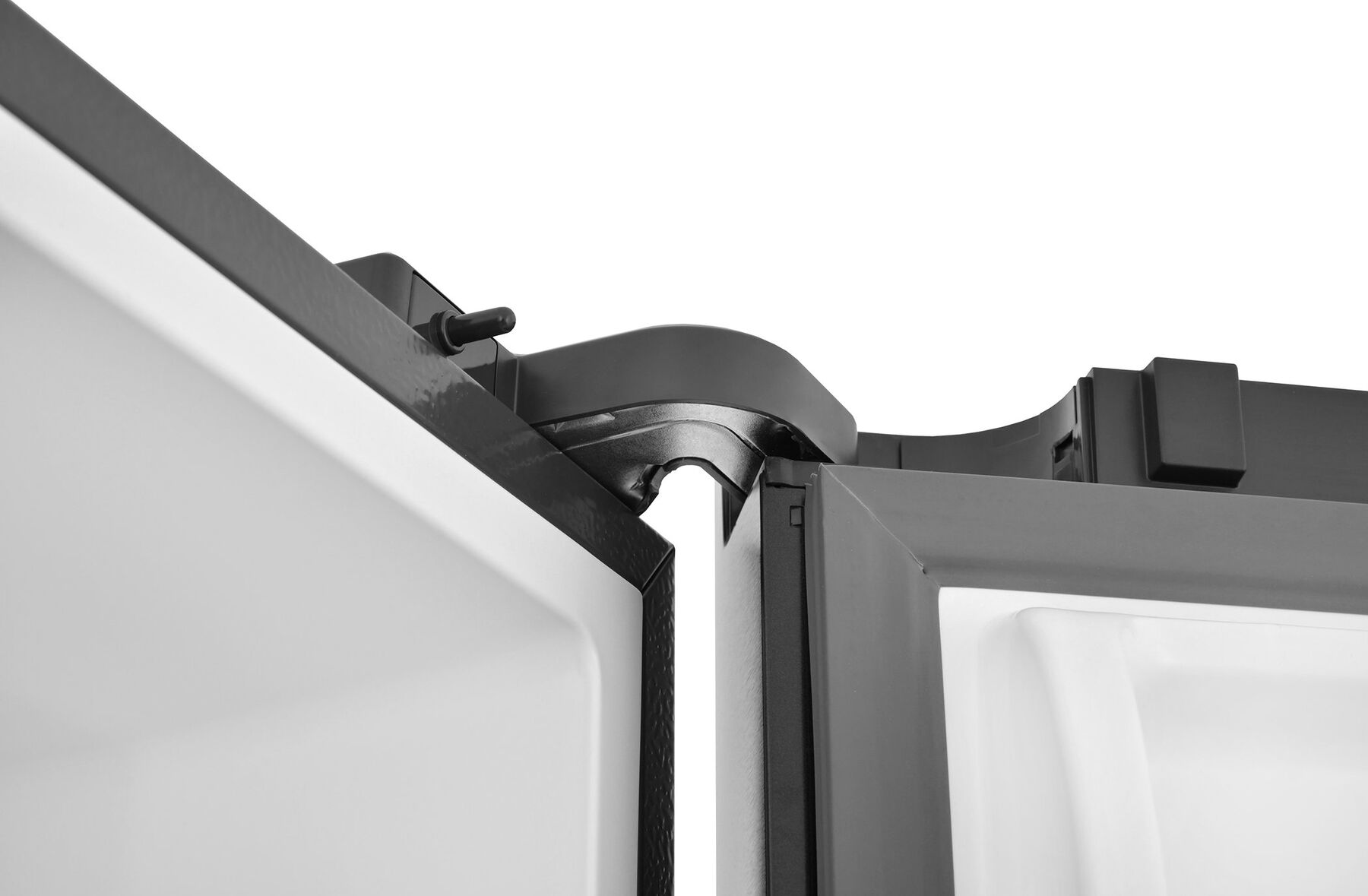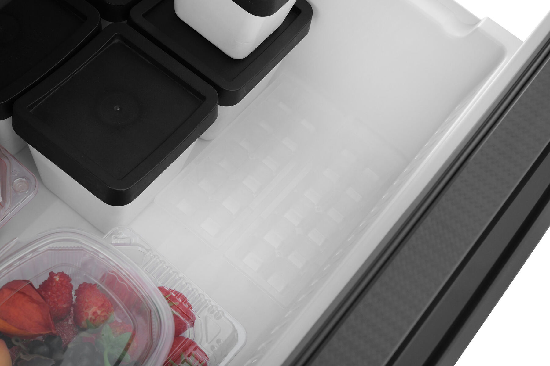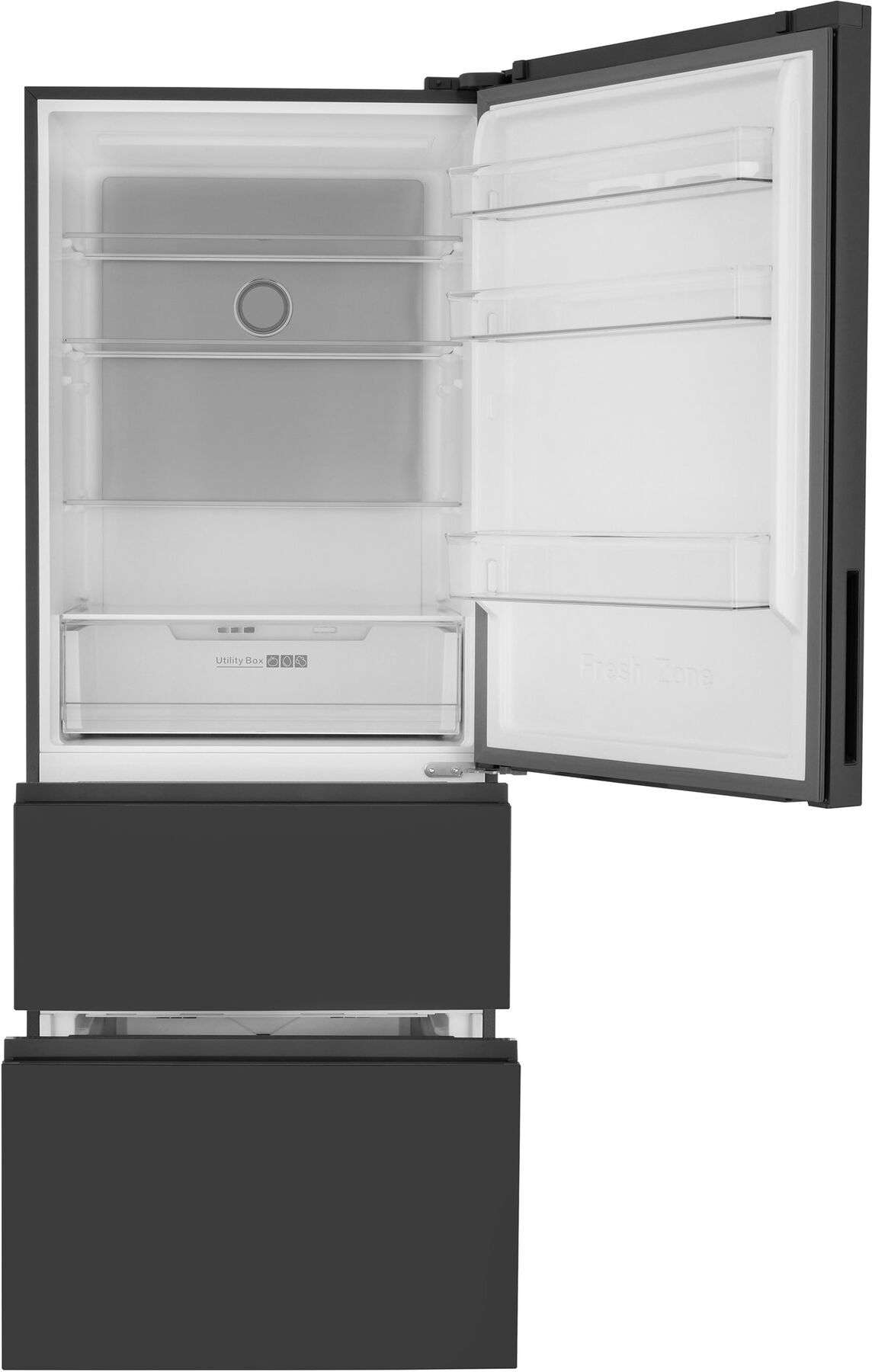 - Italian Door в чёрном цвете – стильный трёхдверный дизайн с удобными выдвижными ящиками – современная эстетика и максимальное удобство использования. Доступ к продуктам без потери холода