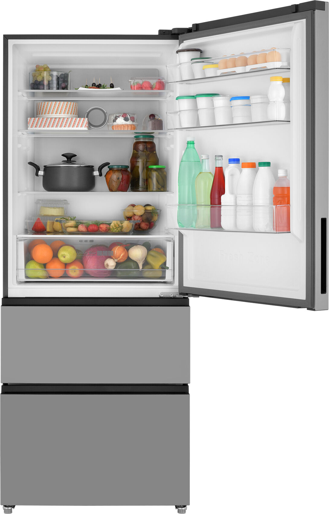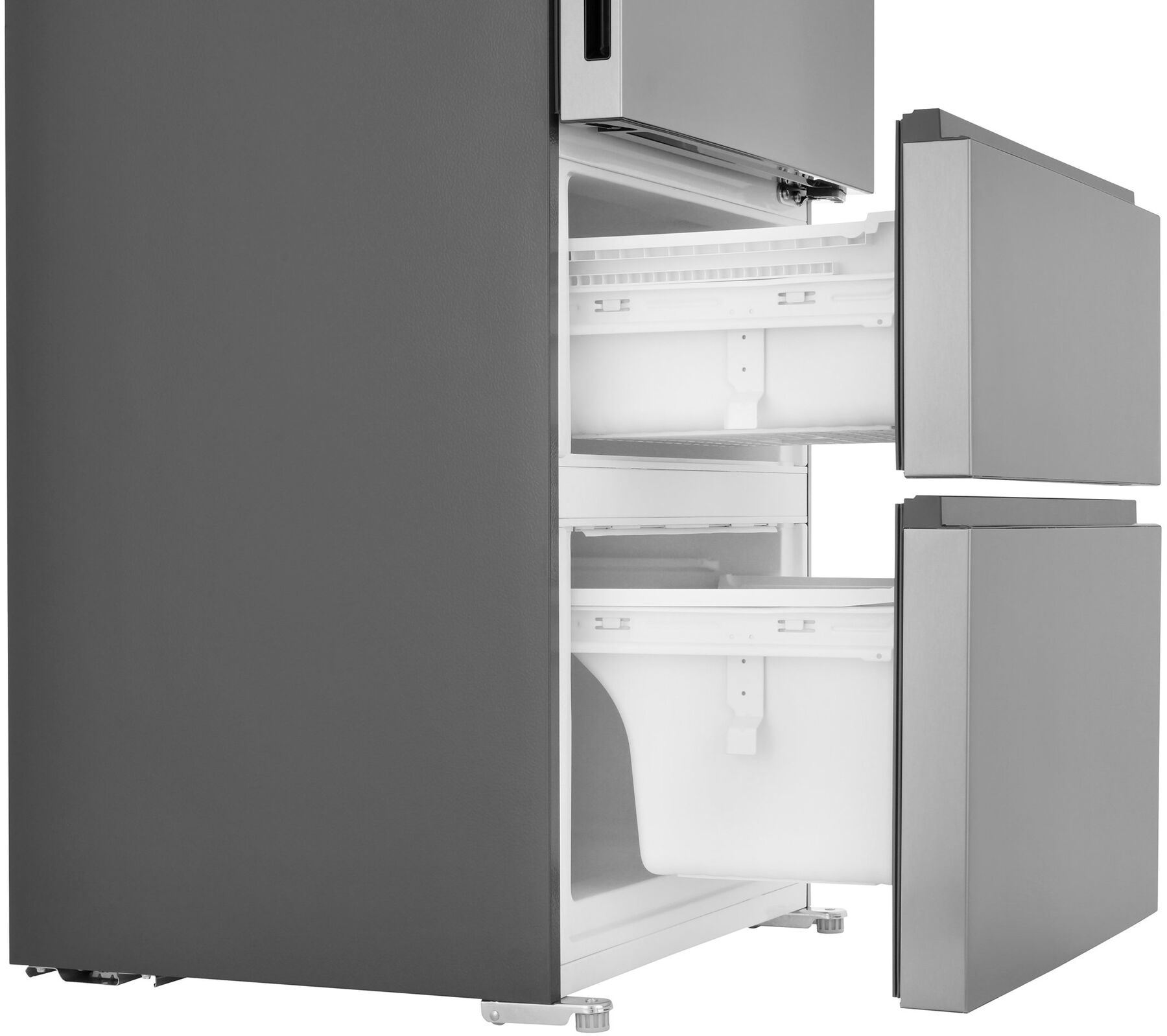 - Italian Door – стильный трёхдверный дизайн с удобными выдвижными ящиками – современная эстетика и максимальное удобство использования. Доступ к продуктам без потери холода