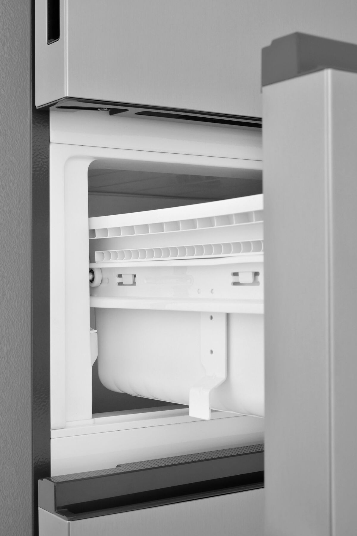 - Italian Door – стильная трёхдверная конструкция – верхнее холодильное отделение с одной дверью и нижнее морозильное отделение с двумя выдвижными ящиками. Удобный доступ к продуктам, эффективное сохранение холода и современный элегантный вид.