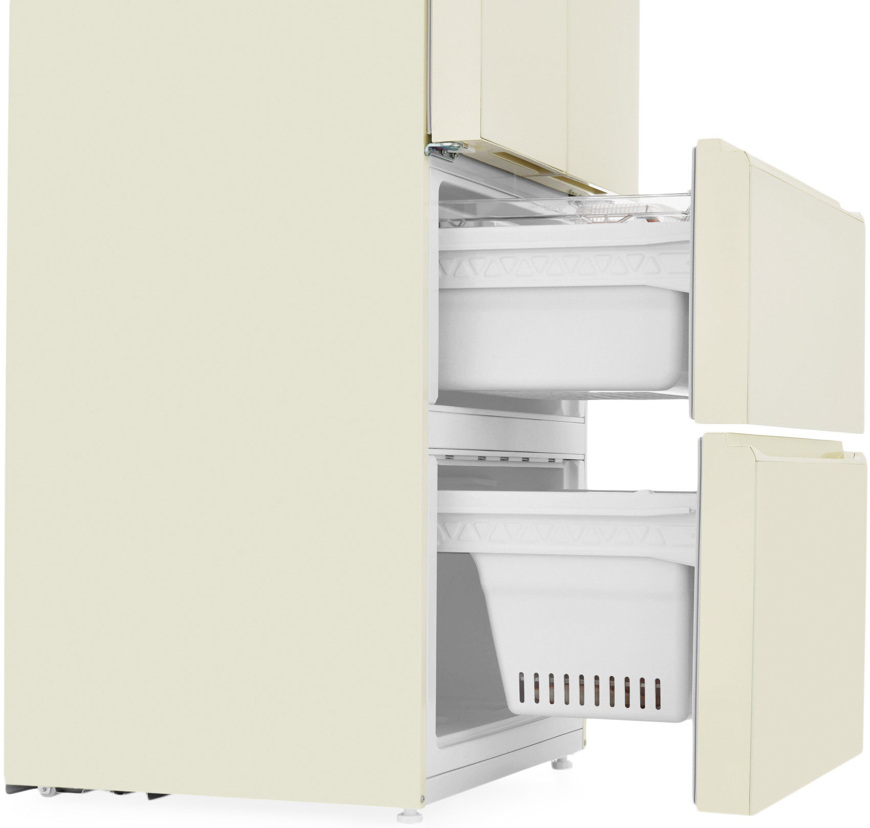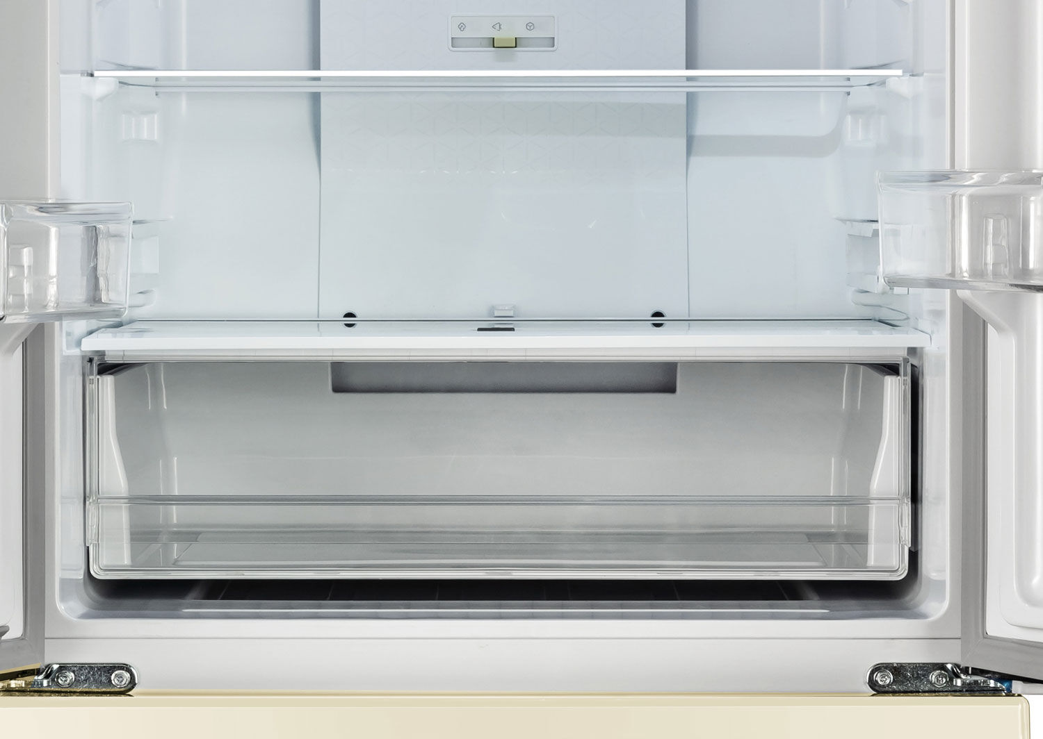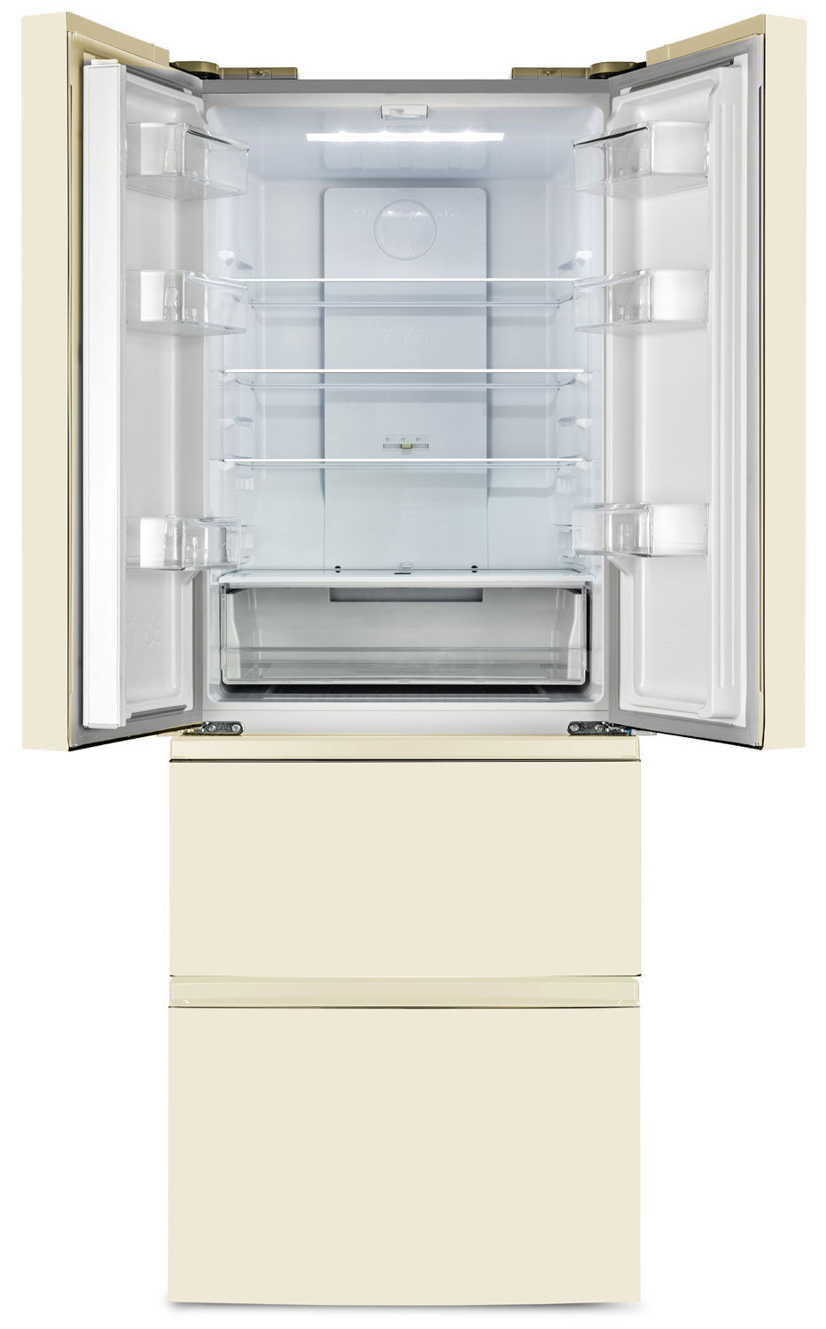 - French Door с 4 дверцами – премиальный дизайн и максимальное удобство – 4 отдельные дверцы и роскошный бежевый стеклянный фасад. Холодильник, который впечатляет с первого взгляда