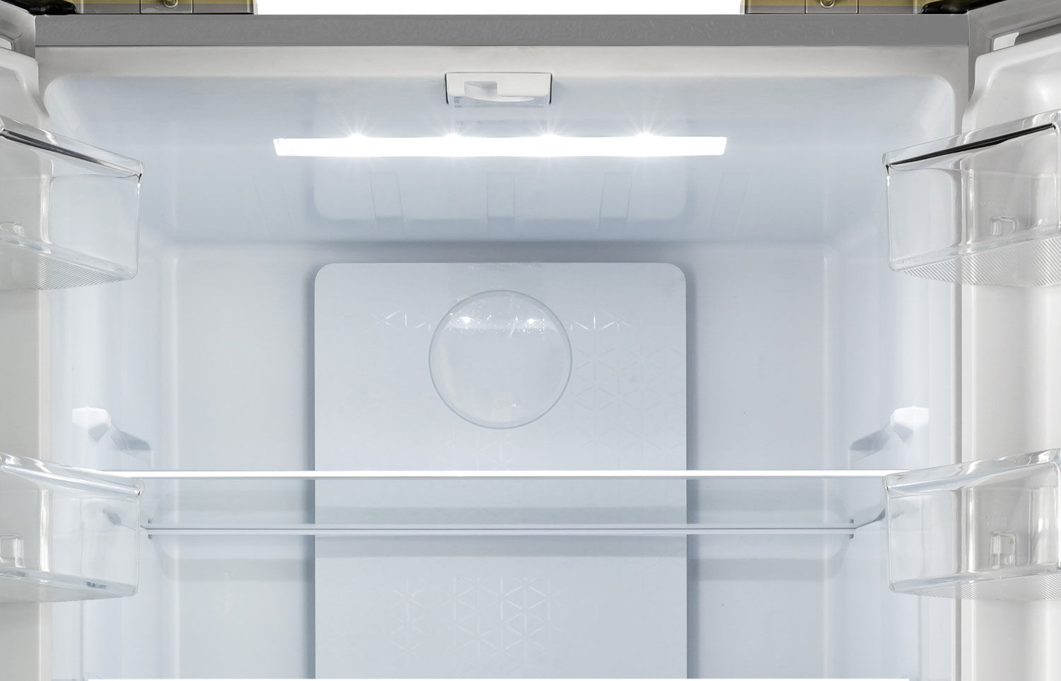 - Дизайн French Door с 4 дверцами – премиальный формат и максимальное удобство – 4 отдельные дверцы в формате French Door обеспечивают удобный доступ к продуктам. Раздельное открывание секций экономит холод и электроэнергию.