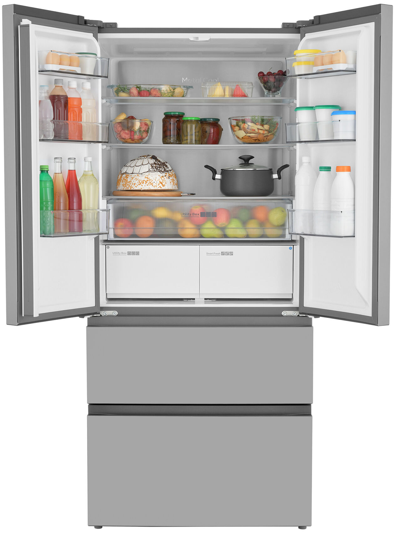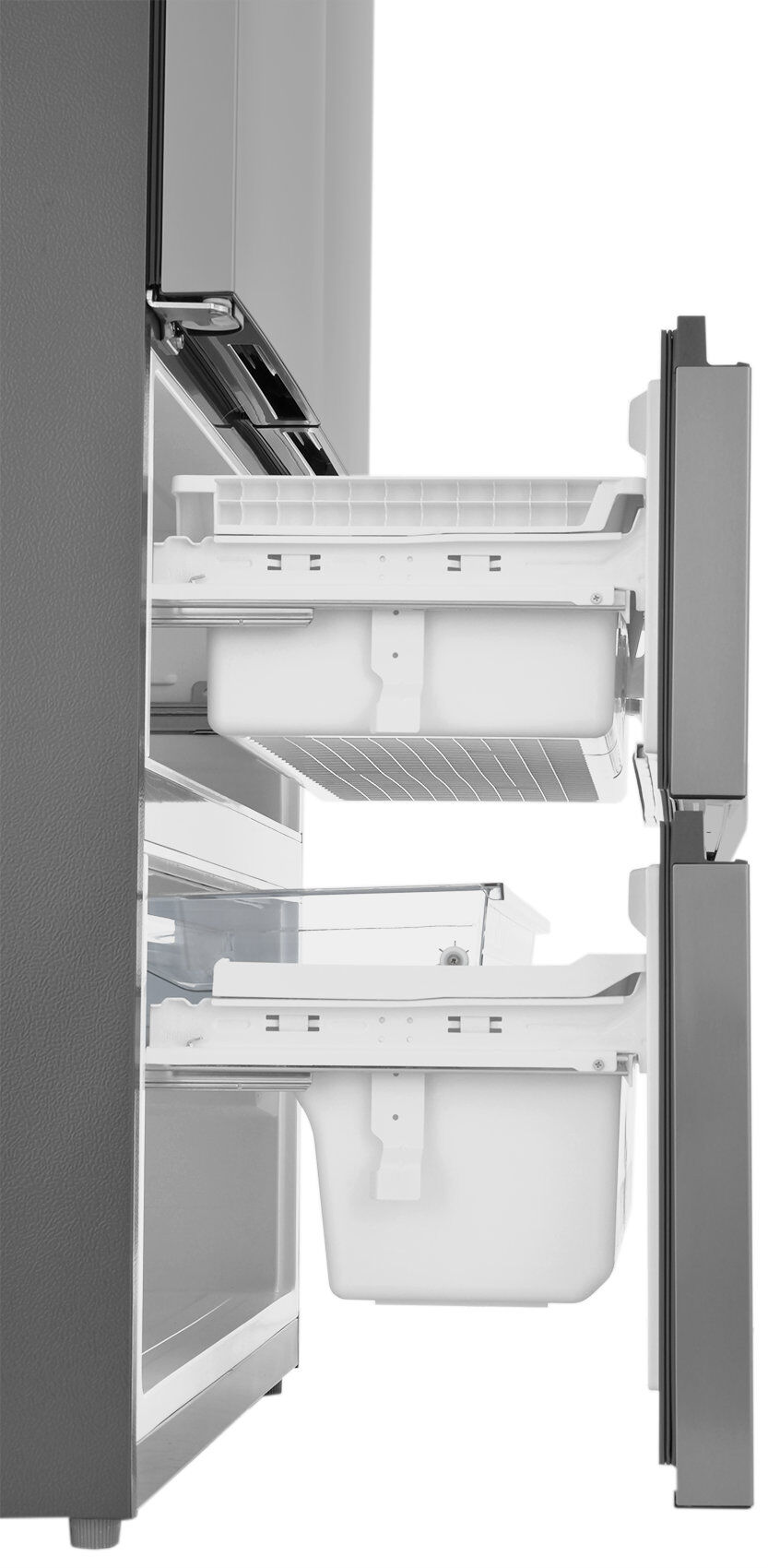 - French Door с 4 дверцами – премиальный дизайн и максимальное удобство – 4 отдельные дверцы и элегантный корпус из нержавеющей стали. Холодильник, который впечатляет с первого взгляда