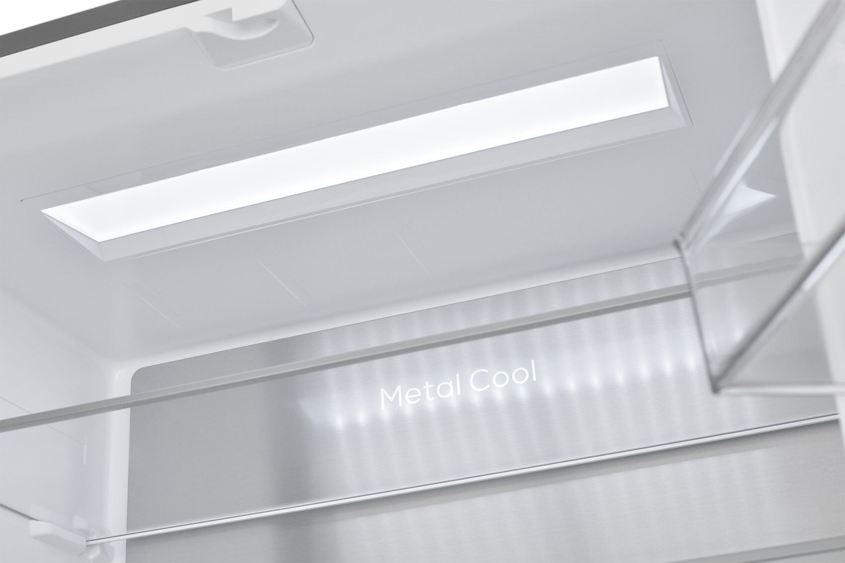 - Металлическая задняя стенка Metal Cool – дополнительное охлаждение и стабильность – металлическая задняя стенка способствует дополнительному охлаждению воздуха в холодильном отделении, не позволяет температуре повышаться при частом открывании дверцы.